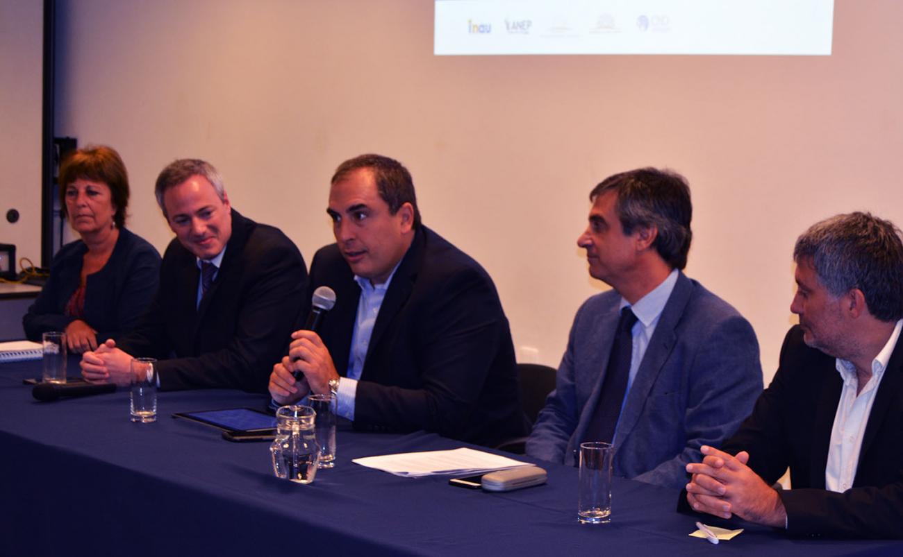 Los detalles del tercer llamado fueron presentados por el subsecretario del Ministerio de Economía y Finanzas, Cr. Pablo Ferreri, el director de la Oficina de Planeamiento y Presupuesto, Cr. Álvaro García, el vicepresidente de la Corporación Nacional para el Desarrollo, Ec. Germán Benítez, la presidenta de INAU, Lic. Marisa Lindner y el abogado de la Dirección Unidad Letrada de ANEP - CODICEN, Dr. Martín Tomé.