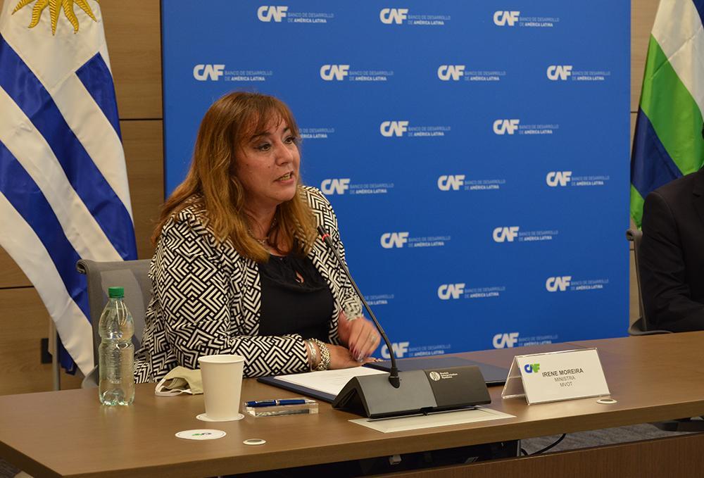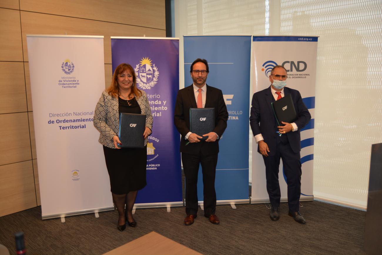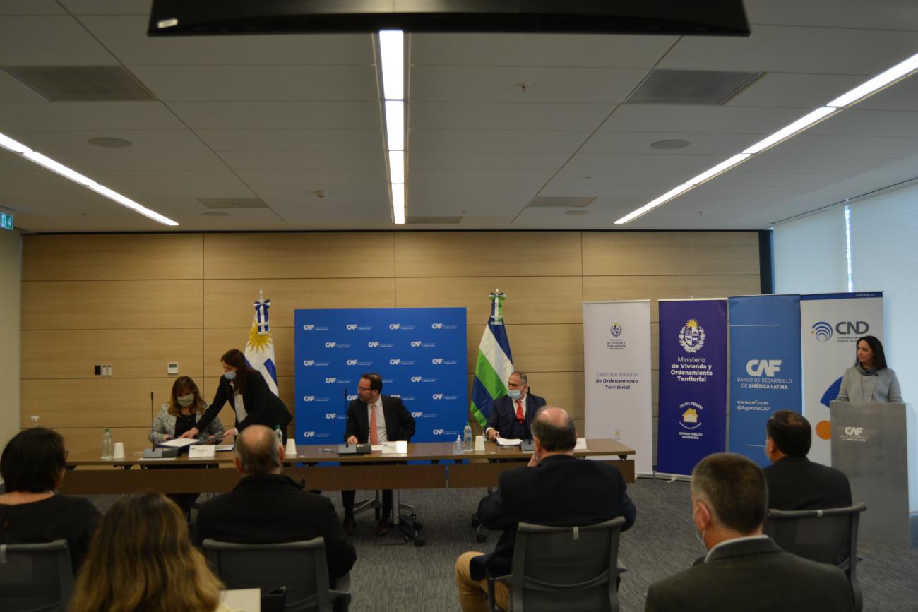 El acto de la firma, que tuvo lugar en la sede de la CAF en Montevideo, contó con las palabras de la Ministra del MVOT, Dra. Irene Moreira, el Vicepresidente de CND, Ángel Fachinetti y el representante de la CAF en Uruguay, François Borit.