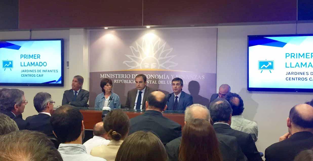 Los detalles de este llamado fueron develados en un acto llevado a cabo en la sede del Ministerio de Economía y Finanzas (MEF) en donde participaron el sub secretario del MEF, Cr. Pablo Ferreri, el director de la Oficina de Planeamiento y Presupuesto (OPP), Cr. Álvaro García, la presidenta del Instituto del Niño y el Adolescente del Uruguay (INAU), Lic. Marisa Lindner, el presidente del Consejo Directivo Central (CODICEN) de ANEP, Prof. Wilson Netto y el presidente de la Corporación Nacional para el Desarrollo (CND), Cr. Jorge Perazzo.