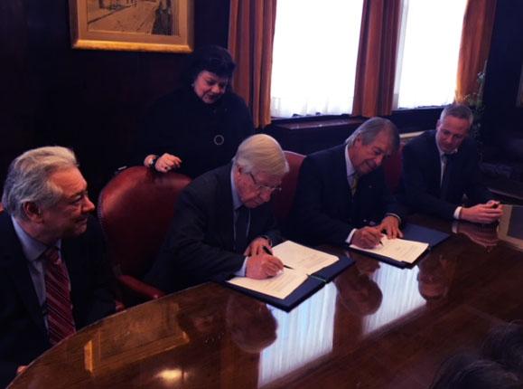 El contrato fue firmado por el presidente de CND, Cr. Jorge Perazzo, el vicepresidente de CND, Ec. Germán Benítez, el director represente de CAF en Uruguay, Germán Ríos y el ministro de Economía y Finanzas, Cr. Danilo Astori.