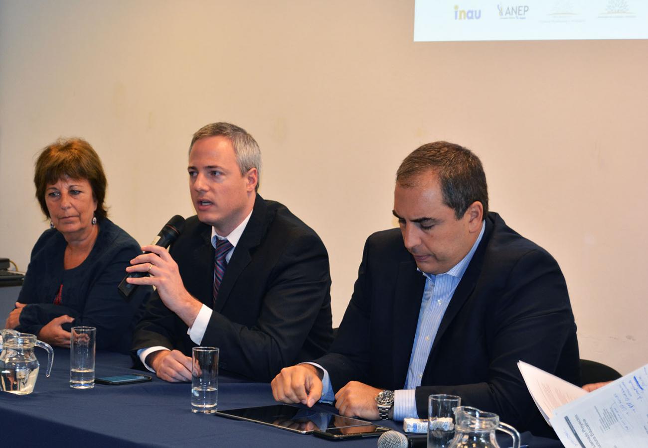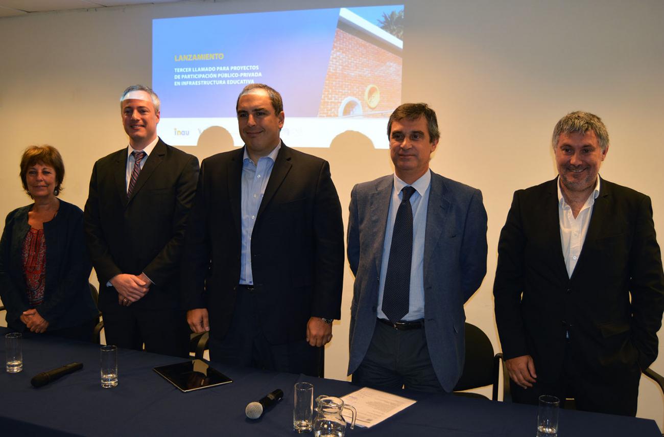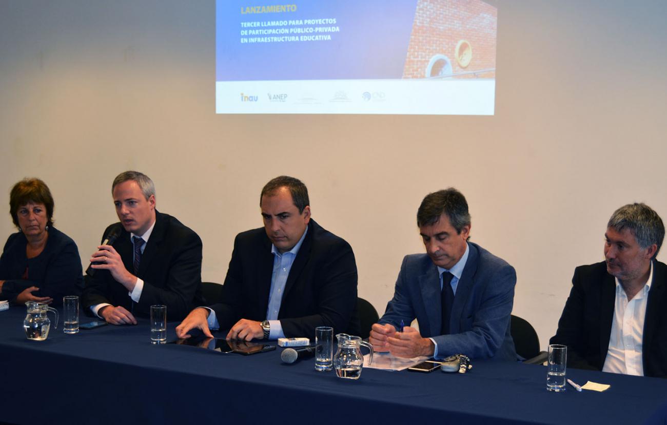 Los detalles del tercer llamado fueron presentados por el subsecretario del Ministerio de Economía y Finanzas, Cr. Pablo Ferreri, el director de la Oficina de Planeamiento y Presupuesto, Cr. Álvaro García, el vicepresidente de la Corporación Nacional para el Desarrollo, Ec. Germán Benítez, la presidenta de INAU, Lic. Marisa Lindner y el abogado de la Dirección Unidad Letrada de ANEP - CODICEN, Dr. Martín Tomé.