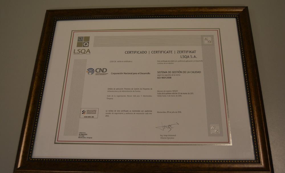 Esta metodología internacional de certificación permite a CND entrar en un mundo de manejo aún más profesional y con valor al cliente. “Es un día importante porque se inscribe en un proceso de certificación de calidad y sobre todo de manejo profesional de los servicios que estamos brindando a nuestros clientes” expresó Pablo Gutiérrez. "Agradecemos a Latu Sistemas, al Directorio y a todos los que participaron de este proceso que ha sido un ejemplo más de trabajo en equipo de CND; Administración de Fondos, Proyectos y Servicios y todos los soportes centrales que han participado en la construcción de esos procedimientos que de alguna manera plasman la manera en la cual veníamos trabajando".