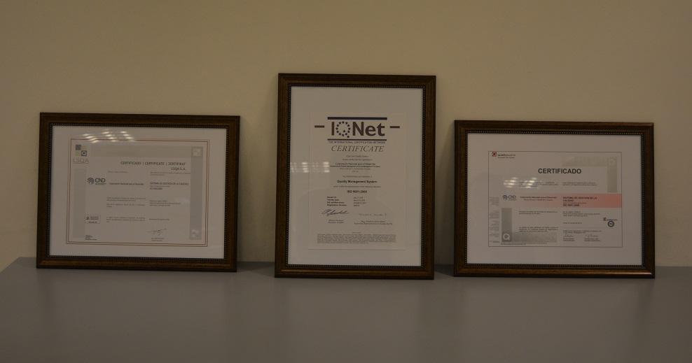 El tercer certificado es proporcionado por IQnet (The International Certification Network) que junto a Quality Austria certifican que CND ha implementado y aplica al Quality Management System el cual cumple con los requerimientos del ISO 9001:2008.