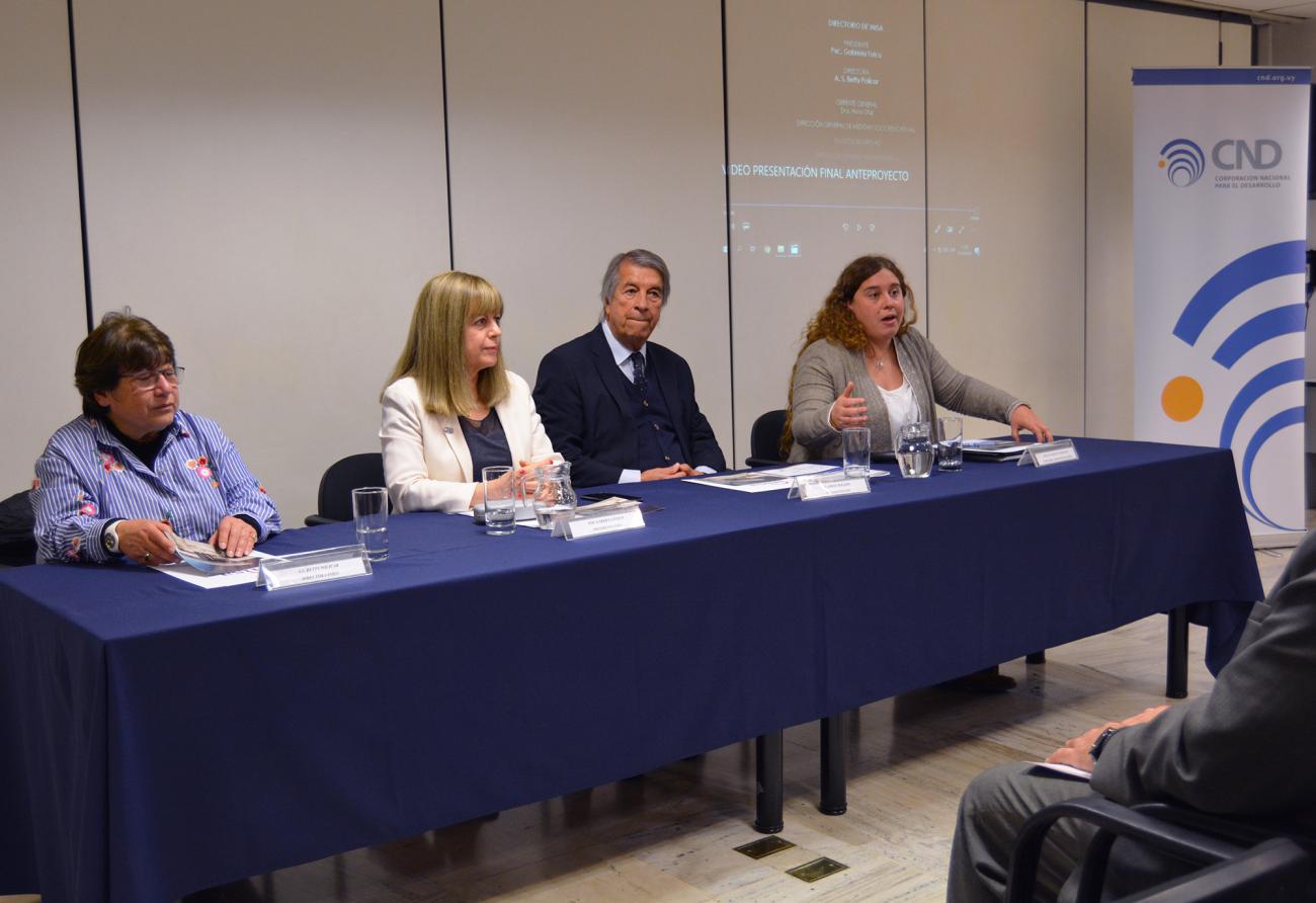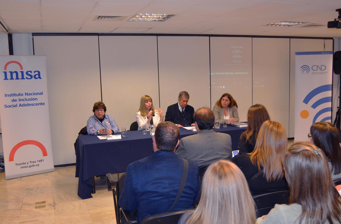 Participaron de la presentación la presidenta del Inisa, Ps. Gabriela Fulco, el presidente de CND, Cr. Jorge Perazzo, la Directora de INISA, Betty Esther Policar y la directora del departamento de Arquitectura de INISA, Arq. Karenina Bergara.